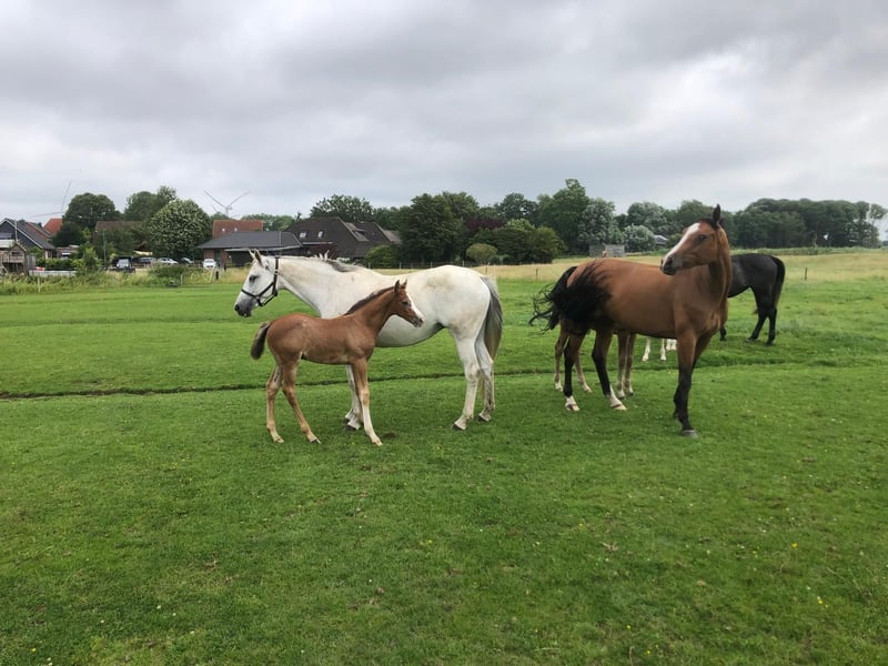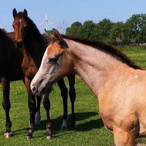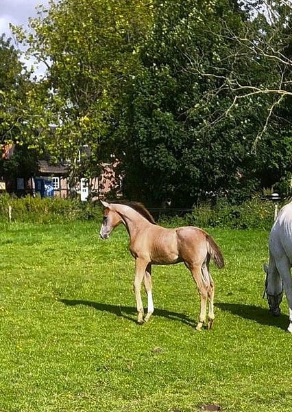 I hereby offer my promising Holsteiner stallion candidate for sale. Clarimo Blue is an extremely alert foal with very good basic gaits. His mother, India Blue, is a full sister to the licensed stallions Zornell 1 and 2. India Blue herself is the mother of many auction foals. India Blue, who was the 1st reserve champion mare in Dithmarschen, has been awarded the state or association premium for four consecutive generations. She also has a daughter by Cascadello, who was rated with 53 points. The first foal of this mare was sold this year at an auction for 17,500 euros. Zypern, the second dam, is the state premium full sister to the mare Utopia, who was rated with 55 points. Zyper is the full sister of the licensed stallion Cancoon, who, according to the text, was victorious over 2.05m in show jumping. Another example of the general rideability is the three clear rounds of Zornell 2 at the European Championships for young riders. If you have any questions, feel free to call me.