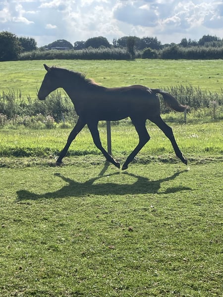 Dieses bezaubernde Hengstfohlen besticht nicht nur durch seinen edlen Typ und sein elegantes Auftreten, sondern auch durch drei ausdrucksstarke, elastische Grundgangarten mit viel Takt und Schwung. Besonders der raumgreifende Trab mit schöner Schulterfreiheit und die energische Hinterhand machen ihn zu einem echten Blickfang. Seine Abstammung ist hochinteressant für den Reitsport: Duplexx – moderner Sporttyp mit Eleganz und hervorragender Bewegungsqualität. Crawford – bekannt für Substanz, Leistungsbereitschaft und Rittigkeit. Dolany (Donnerhall-Linie) – Garant für beste Dressurgene mit hervorragendem Interieur. Seine hohe Qualität wurde bereits mit einer Fohlenprämie ausgezeichnet – ein sicheres Zeichen für seine außergewöhnlichen Anlagen. Neben seinen sportlichen Möglichkeiten überzeugt er auch im täglichen Umgang: Aufgewachsen in liebevoller Familienaufzucht, ist er bereits halfterführig, handzahm und artig. Mit seinem freundlichen Charakter und seiner Neugierde macht er jeden Tag Freude im Umgang. Ein Fohlen, das mit seinem Charme und seiner Ausstrahlung sofort begeistert und mit seiner Abstammung beste Voraussetzungen für eine erfolgreiche Zukunft mitbringt.