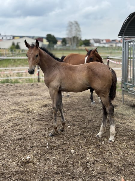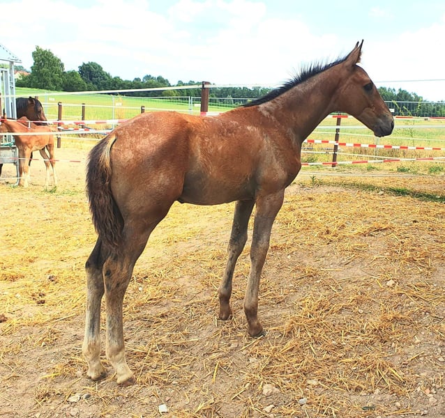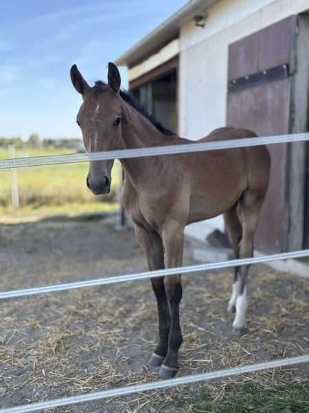 The father Vingino, DSP Master Stallion, himself successful at S***** (160cm) and, importantly, ranked first in the world rankings due to his successful offspring. The mother Grain o.P., a daughter of Glückspilz, is also excellently bred for jumping. However, she is an outstanding family horse without competitive ambitions from the owner. She is a district premium mare with the Holsteiner Verband. Her two daughters by Diago (3 years) and Diarado (2 years) both received the foal premium. Here, a character-wise and health-wise impeccable, people-oriented, highly noble colt is growing up under optimal conditions. Please also see the videos for more information.