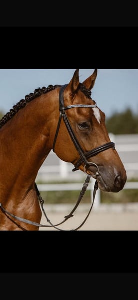 I purchased a 2-year-old Holsteiner stallion from Olaf Rörden (Föhr Island). He is now 10 years old, gelded, stunningly beautiful, very well-trained, and easy to ride on rubber bit (S-level dressage). He has passed one veterinary inspection and has never needed a vet. His pedigree is quite exceptional: direct descent from Baloubet du Rouet x Diamant de Semilly. He is a consistent winner up to 1.30 m, placed at 1.40 m, cautious, and above all, very easy to ride!