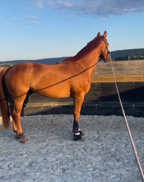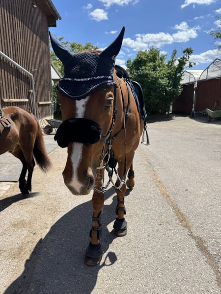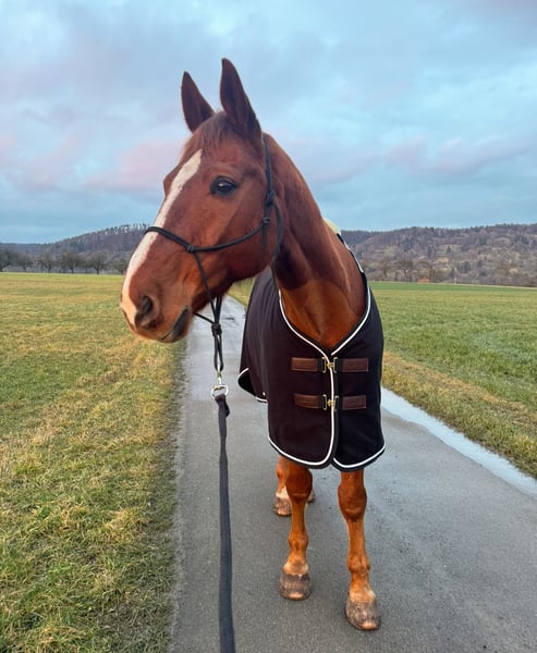 Fünf Sterne zuhause gesucht für Holsteiner/Hannoveraner Wallach. Copa ist ein sehr lieber Wallach, er braucht seine Zeit bis er seinem Besitzer vertraut, aber wenn er mal vertraut macht er alles für dich ! Er geht sehr gerne lange ins Gelände, ob in der Gruppe oder alleine. Copa macht aber auch auf dem Sand immer steht’s eine schöne Figur und gibt sich immer sehr viel Mühe. Er hat Spass am Springen, das aber weder hoch noch auf dem Turnier! Es war eine sehr schwere Entscheidung Copa weiter zu geben, deshalb wird er auch nur in gute hänge weiter gegeben. Bitte nur bei ehrlichem Interesse melden! Über diese Nummer immer erreichbar: 0791360992