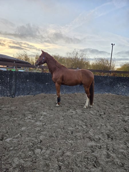 À vendre, un hongre Holsteiner de 12 ans par Clarcon. Il est très attaché à l'humain, se montre brave en extérieur et au maréchal-ferrant, et son comportement général est simple et facile. Il faut souligner sa remarquable attitude de travail. Il est toujours motivé et souhaite faire plaisir. Bien qu'il n'ait pas encore été présenté en public, je peux l'imaginer comme un excellent partenaire pour le sport dans la catégorie A-B. En raison de sa taille d'environ 1,70 m et de son tempérament, il pourrait également convenir comme cheval de voltige, bien que cela n'ait pas encore été testé. Il est vendu uniquement parce que ses propriétaires souhaitent se réorienter. Plus de photos et vidéos sur demande.