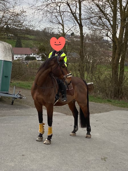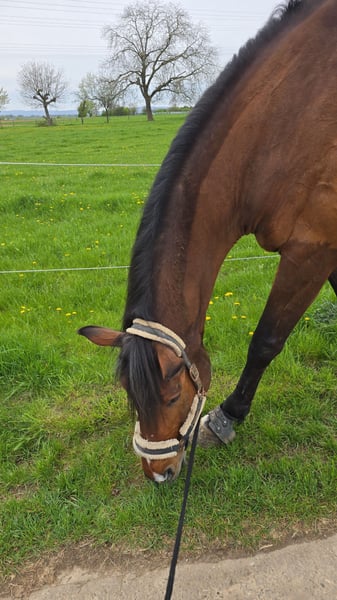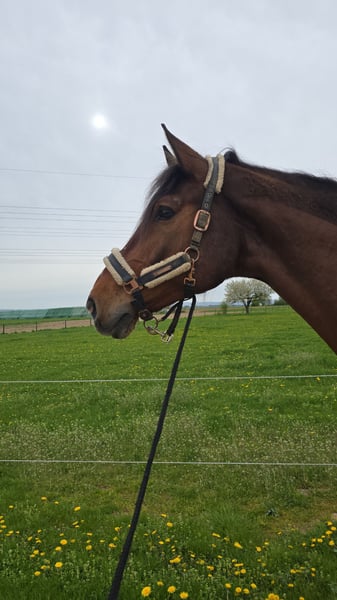 Ich verkaufe im Auftrag eleganten braunen Wallach, geb. 2014, mit beeindruckendem Stockmaß von 180 cm, aber was ihn wirklich groß macht, ist sein Wesen. Er ist klar im Kopf, absolut unerschrocken und dabei stets ehrlich – ein Pferd, das man einfach ins Herz schließen muss. Dieses vielseitige Freizeitpferd besticht durch seine ruhige und ausgeglichene Art sowie sein angenehmes Temperament. Der Wallach ist gut geritten und zeigt sich im Umgang stets freundlich und kooperativ. Ideal für Reiter, die ein zuverlässiges und charakterstarkes Freizeitpferd suchen. Ein echtes Allround-Talent, das sowohl für entspannte Ausritte als auch für kleinere Parcours geeignet ist. Hoog ist bombensicher, da er mit Traktoren, Baggern und anderen Tieren aufgewachsen ist und dies ihn unbeeindruckt lässt. Er ist kein Steiger, kein Buckler, kein Sensibelchen nur ein sanfter Riese, der bei einigen Dingen etwas Geduld braucht. Er geht gerne ins Gelände und bleibt dort auch stets gelassen, egal ob allein oder in der Gruppe und flitzende Hunde machen ihn auch nicht Nervös, er hat eben Nerven aus Stahl. Er ist vorne beschlagen, dies müsste beibehalten werden. Unterm Sattel zeigt er sich willig und kooperativ. Ob Platzarbeit oder Ausritt – Hoog macht mit. Aber: Seine Größe bringt auch Verantwortung mit sich. Damit er langfristig gesund bleibt, braucht er regelmäßige Bewegung, gezielten Muskelaufbau und etwas Training. Er ist kein Steh-Pferd – er will und soll in Bewegung bleiben. Durch seinen kleinen Schönheitsfehler ist dies besonders wichtig. Er hat einen Hahnentritt, dieser ist Tierärztlich abgeklärt und beinschränkt ihn in keinsterweise. Hoog ist kein „Sportgerät“ – aber ein Pferd mit viel Potenzial und einem Herz aus Gold. Er braucht Menschen, die ihn lieben, wie er ist! Wir suchen für Hoog ein 5-Sterne Plus zuhause in dem er für seine Liebenswürdige und Menschenbezogene Art geschätzt wird. Gewünscht wird keine reine Boxenhaltung, sondern mindestens eine Paddock Box mit großem Paddock, Idealvorstellung wäre ein Offenstall mit viel Lauffläche. Vorherige Besichtigung der Besitzer des neuen Zuhauses wünschenswert. Angpasster Sattel und Hufschuhe können mit erworben werden. Sattel 2.000€ VHB (NP 4.999€) Hufschuhe 180€ (NP 250€) Weiteres Equipment ist inklusive Kein Verkauf an Händler oder Reitschulen, da er eine feste Bezugsperson möchte. Um Reittourismus zu vermeiden, erheben wir 35€ pro Proberreiten, die beim Kauf verrechnet werden. Bei Interesse oder Fragen freue ich mich auf Ihre Kontaktaufnahme.