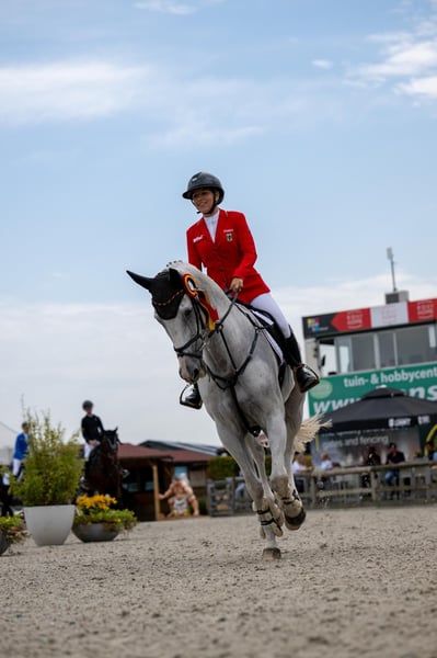 Series winner in show jumping class M. Gentle and forgiving of mistakes. Zeus is a very lovable gelding that I (an amateur rider) purchased as a 4.5-year-old foal directly from the breeder and have trained myself. He has been placed in every competition from his first show and has received several 8s in show jumping tests up to class M. He also scores 8s in style jumping. Three years ago, I entrusted him to my then 11-year-old daughter. She started jumping with him and has successfully completed all children's classes this year. He won an individual at the Nations Cup over 130 meters. My daughter has been riding him completely independently for two years. He is excellent in dressage, able to perform lateral movements and extended trot. However, he is not suitable for beginners, as he is quite sensitive. He is confident cross-country, both in a group and alone, and jumps over every tree in the forest. He has been to the sea and is comfortable in water. I am looking for a 5-star home for him, either for a girl or woman who wants to compete successfully in L and M show jumping, or for a girl to compete in the Children's Tour. He is an absolutely reliable horse.
