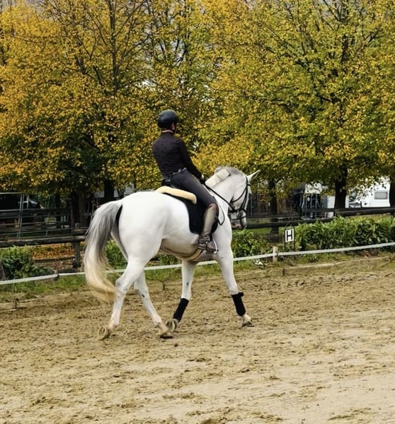 Ganador en varias ocasiones en saltos de 1.20 m. Muy cuidadoso, perdona errores y siempre quiere agradar. Zeus es un caballo muy adorable, a quien compré (como amazona amateur) como potro sin montar, de 4,5 años, directamente del criador, y que he entrenado yo misma. Desde su primera competición, ha quedado siempre en los puestos de honor y ha obtenido varias notas de 8 en pruebas de salto para caballos jóvenes, hasta nivel M. También en concursos de estilo muestra notas de 8. Hace tres años, se lo entregué a mi hija, que en ese momento tenía 11 años. Ella empezó a saltar con él y, este año, ha superado con éxito todas las pruebas de niños pequeños. Ganó una prueba individual en la Copa de Naciones en 130 m. Mi hija lleva dos años saltando con él de forma totalmente autónoma. Es un caballo excelente en doma, puede hacer cambios de mano y galopes laterales. Sin embargo, no es un caballo para principiantes, ya que es bastante sensible. Es seguro en campo, tanto en grupo como solo, y en el bosque ha saltado sobre cada árbol, además de haber estado en la playa y en el agua. Deseo para él un hogar 5* donde pueda estar bien cuidado. Idealmente, una joven o mujer que quiera montar con éxito en saltos L y M, o una niña que comience en A y quiera progresar hasta M**.