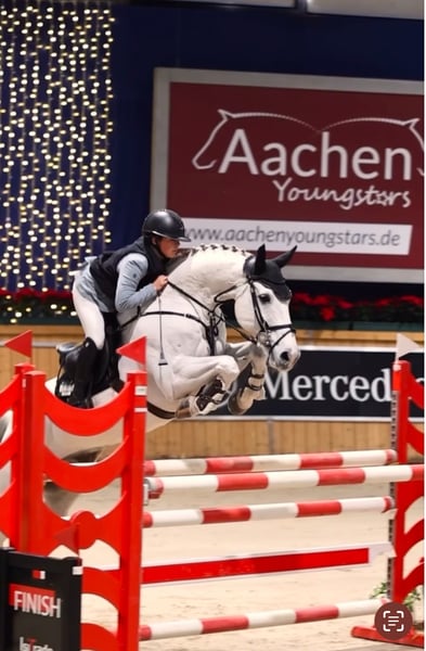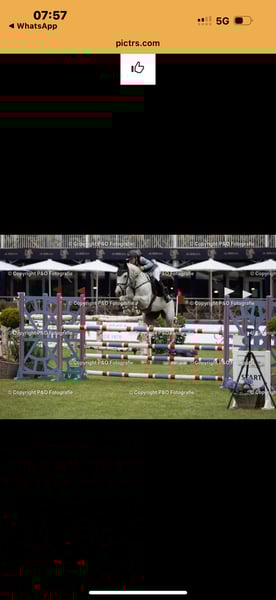 Seriensieger im M springen . Vorsichtig Verzeiht Fehler Will immer gefallen . Zeus ist ein total liebenswerter Wallach , den ich ( Amateur Reiterin ) 4,5 J. Roh vom Züchter gekauft und ausgebildet habe . Er war vom ersten Turnier an direkt platziert und hat mehrere 8 et Noten in Springpferde Prüfungen bis M erhalten . Auch bei Stilspringen erhält er 8 er Noten . Vor 3 Jahren habe ich meint damals 11 jährige Tochter in gegeben . Sie hat mit A springen angefangen und dieses Jahr alle Childrens Prüfungen top gemeistert. Nationencup Einzel gewonnen 130 m . Meine Tochter springt ihn seit 2 Jahren ganz alleine . Er ist dressurmäßig toll zu reiten , kann Seitengänge und Außengalopp . Er ist allerdings kein Anfänger Pferd , da er zu sensibel ist . Er ist Geländesicher , sowohl in Gruppe als auch alleine und springt im Wald auch über jeden Baum , war schon am Meer und geht ins Wasser . Ich wünsche mir ein 5* zuhause für ihn . Entweder ein Mädchen oder Frau , die L und M springen hoch erfolgreich reiten möchte. Oder für ein Mädchen für die Children Tour . Er ist ein absolutes Verlass Pferd .