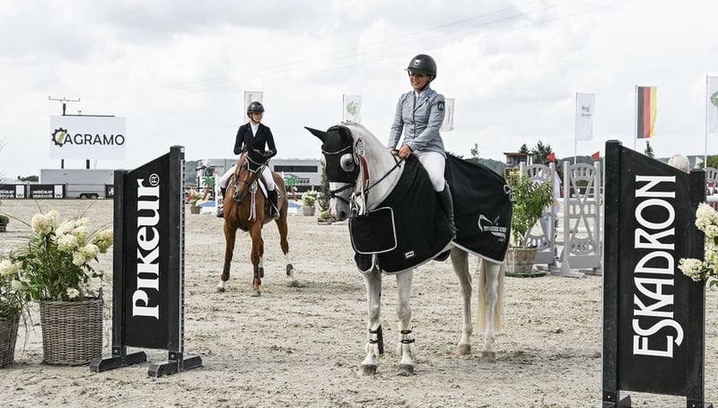 Serii zwycięzca w skokach przez przeszkody do poziomu M. Ostrożny, wybacza błędy, zawsze chce się podobać. Zeus to bardzo kochany wałach, którego kupiłam (amatorska jeźdźczyni) jako 4,5-letnie źrebię od hodowcy i samodzielnie go wyszkoliłam. Od pierwszego startu był od razu plasowany i uzyskał kilka ocen 8 w konkursach skoków dla młodych koni aż do poziomu M. Również w konkursach stylowych otrzymuje oceny 8. Trzy lata temu oddałam go mojej 11-letniej córce. Zaczęła od skoków i w tym roku świetnie poradziła sobie ze wszystkimi konkursami dziecięcymi. Wygrała indywidualnie w Pucharze Narodów na 130 m. Moja córka skacze z nim sama od dwóch lat. Jest świetnie jeźdzony w ujeżdżeniu, potrafi wykonywać półobroty i galop na zewnątrz. Nie jest to jednak koń dla początkujących, ponieważ jest zbyt wrażliwy. Jest pewny w terenie, zarówno w grupie, jak i samodzielnie, i skacze przez każdy drzewo w lesie, był już nad morzem i wchodzi do wody. Życzę mu domu na 5* – dla dziewczyny lub kobiety, która chce jeździć na poziomie L i M w skokach z dużym sukcesem, albo dla dziewczyny na Children Tour. To absolutnie niezawodny koń.