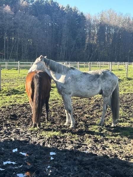 Corby ist ein 14-jähriger Schimmelwallach mit viel Herz und einem ganz besonderen Charakter. Ich habe ihn 7-jährig mit dem Ziel Turniersport Springreiten gekauft. In den ersten zwei Jahren konnten wir gemeinsam erfolgreich Springprüfungen der Klassen L und M absolvieren. Leider zog sich Corby anschließend eine Fesselträgerverletzung am Vorderbein zu. Nach einer langen Rehabilitationsphase mit kontinuierlicher tierärztlicher Betreuung habe ich ihn mehrfach wieder schonend antrainiert. Trotz aller Sorgfalt blieb er jedoch nie dauerhaft beschwerdefrei. Um ihm eine echte Pause zu ermöglichen, stand Corby anschließend ca. 10 Monate im Offenstall in einer kleinen Herde, komplett ohne Arbeit. Diese Zeit tat ihm mental und auch physisch sehr gut. Nach dieser Pause habe ich einen letzten behutsamen Anlauf gestartet und Corby erneut aufgebaut. Anfang 2025 konnte er nochmals erfolgreich Turniere auf L-Niveau bestreiten. Im Sommer 2025 verletzte er sich jedoch erneut – diesmal an der Sehne am Hinterbein. Auch diese Verletzung wurde konsequent behandelt, inklusive einer 12-wöchigen Pause. Seit nunmehr 3 Monaten befindet er sich wieder im regelmäßigen Training und wird aktuell normal geritten. Zum Wohl des Pferdes habe ich die Entscheidung getroffen, Corby aus dem Turniersport herauszunehmen. Er soll nicht weiter springmäßig belastet werden. Ich wünsche mir für ihn ein liebevolles und dauerhaftes Zuhause, in dem er freizeitmäßig in der Halle, auf dem Platz und im Gelände geritten wird. ❗ Wichtig: Corby ist nicht für turnierambitionierte Reiter geeignet, da er die entsprechende Belastung langfristig nicht aushält. Charakter & Umgang: Corby ist ein sehr verschmuster, menschenbezogener und liebevoller Wallach. Er ist Schmiede- und verladefromm, hat keinerlei Unarten im Umgang und kennt Herdenhaltung (geeignet für Wallachherde). Er ist kein absolutes Anfängerpferd, da er durchaus Energie mitbringt. In der täglichen Dressurarbeit zeigt er sich jedoch sehr motiviert, fein und angenehm zu reiten. Corby koppt an seinem Boxenfenster. Seitdem er in meinem Besitz ist, hatte er keine gesundheitliche Beeinträchtigung durch diese Angewohnheit. Ich gebe Corby nur in die besten Hände ab – Platz vor Preis ist für mich selbstverständlich.