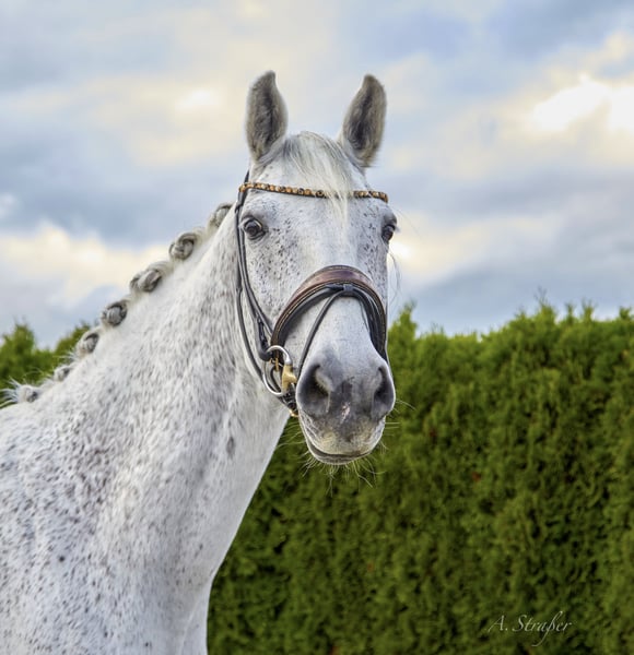 Zum Verkauf steht ein bildhübscher und äußerst qualitätsvoller 14-jähriger, ca. 173 cm großer Holsteiner Wallach von Catoo x Corleograf. Der Wallach ist bis Intermediare I ausgebildet und kann aktuelle Erfolge (Saison 2026) bis S** am Turnier vorweisen. In der letzten Saison fungierte er als Lehrmeister für ein junges Mädchen, welches er innerhalb kürzester Zeit von A bis S getragen hat. Ausgestattet mit drei hervorragenden Grundgangarten sowie einer außergewöhnlichen Arbeits- und Leistungsbereitschaft, bringt der Wallach alles mit, was das Sportreiterherz begehrt. Cantando ist sehr einfach zu reiten, in jeder Hinsicht unkompliziert und verzeiht auch Reiterfehler. Mit Piaffe, Passage sowie Einerwechsel wurde begonnen - somit ist der Wallach durchaus ein potenzielles Grand Prix Pferd. Auch im Umgang ist er absolut brav, menschenbezogen und verschmust. Natürlich kennt unser Schimmi auch das Ausreiten und ist auch hierbei ein Verlasspferd! Ebenso schmiede- und verladefromm. Ausschließlich aufgrund von Zeitmangel (Studium) schweren Herzens an Bestplatz zu verkaufen! Eine AKU inkl. Röntgenbilder ohne Befund aus 2023 liegt vor! Anfragen bei ernsthaftem Interesse bitte nur telefonisch oder per WhatsApp unter +49 176 46187186