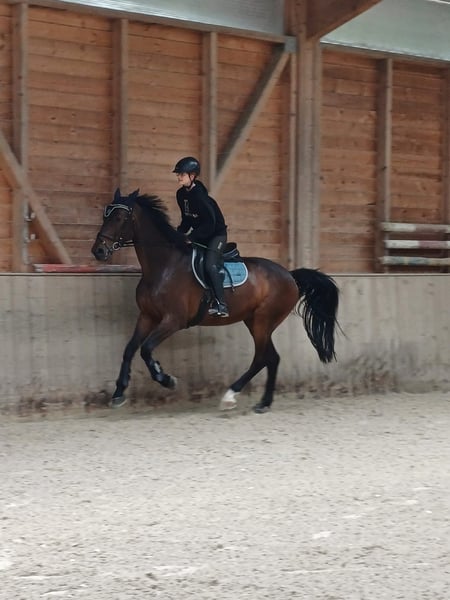 For sale: an impressive Holsteiner stallion, born in 2011. This dark bay gelding captivates with his elegant appearance and balanced temperament. Standing at 16.9 hands, he combines strength and grace, making him a versatile partner for leisure riding. Well-trained and solidly schooled, this Holsteiner impresses with his reliable foundation and pleasant disposition. Whether for relaxed hacks, jumping lessons, gallop training, or lunging – this stallion proves to be a true all-rounder. Thanks to his robust physical condition and friendly nature, he is suitable for experienced riders, leisure riders, and beginners alike. For inquiries or further information, please feel free to contact me. Viewings and test rides can be arranged by appointment.