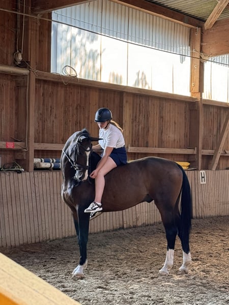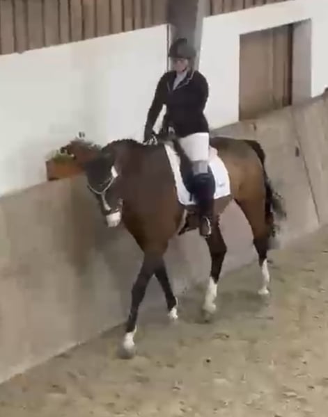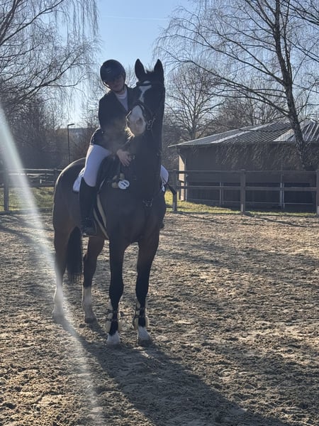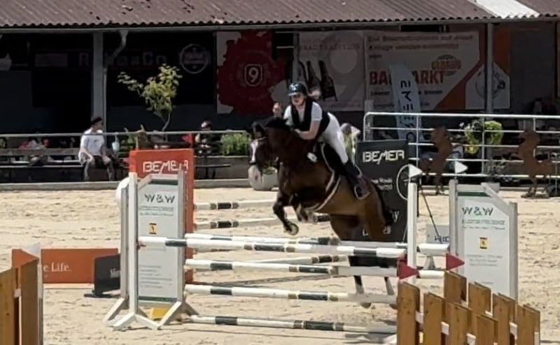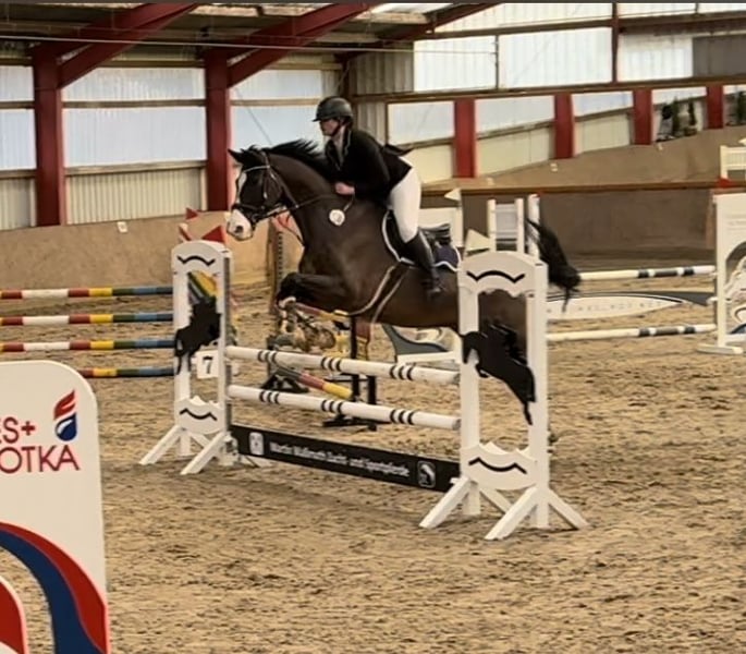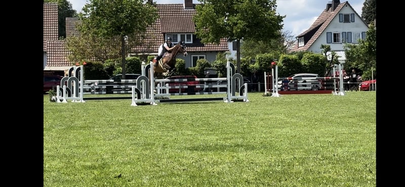 Wir verkaufen unseren geliebten Wallach, da meine Tochter ihm nach ihrer Op nicht mehr gerecht wird. Gleich vorweg er ist auf Grund Krankheit meiner Tochter seit August 25 nicht im Training. (Wird zwar bewegt aber braucht Konditionstraining für Turniere) Er hat meiner Tochter viel Freude bereitet sowohl im Springen und in der Dressur als auch im Gelände. Er hat sie durchs große Abzeichen begleitet und auf vielen Turnieren. Er kennt Doppellonge, longieren, Führanlage, reiten ohne Sattel (und Halsring) Geht brav auf den Hänger (alleine verladen kein Problem), lieb beim Schmied, regelmäßig Physio und Osthe vorgestellt. Zähne regelmäßig gemacht (werden Januar 2026 noch gemacht), komplett geimpft und entwurmt. Videos auf Anfrage Der kleine Mann (175 cm) hat zwei Chips die ihn nicht beeinträchtigen. Er hat Equines Asthma ist aber komplett Symptomfrei. (Sollte NICHT auf Stroh stehen ) Zubehör kann gegen Aufpreis erworben werden (Passier Springsattel, Passier Dressursattel, Trense,…..) Probereiten möglich, wir nehmen 30€ pro Probereiten wegen dem Reittourismus.