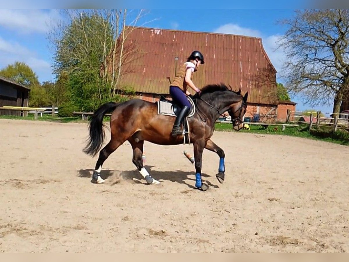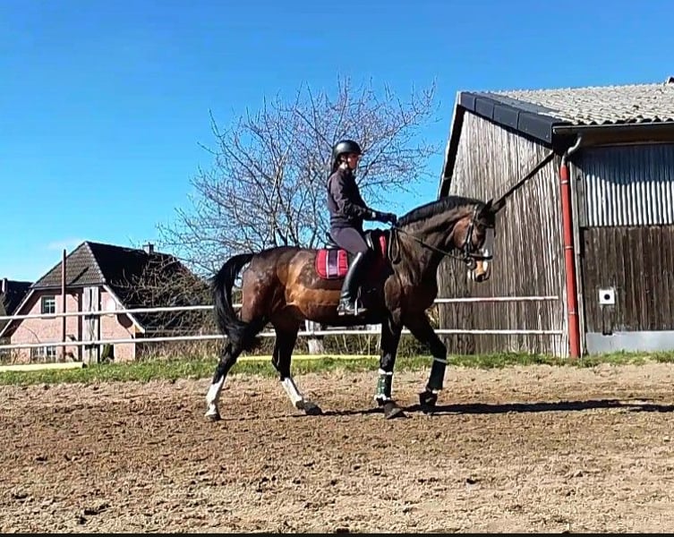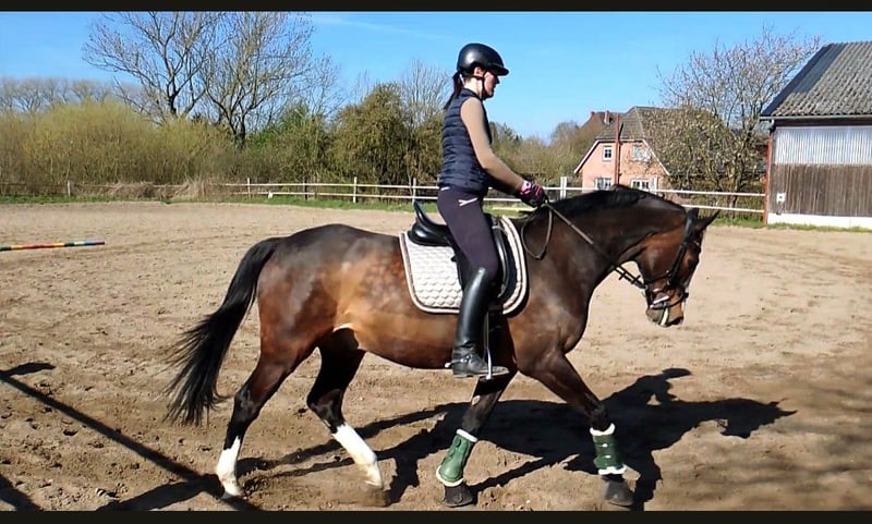 Zum Verkauf steht ein 16-jähriger Holsteiner Wallach mit einem Stockmaß von 169 cm. Der hübsche Braune überzeugt nicht nur durch seine Ausstrahlung, sondern vor allem durch seine feine Art und Rittigkeit. Er ist ein sensibles Pferd, das eine feste Bezugsperson braucht und bei entsprechendem Vertrauen sein volles Potenzial zeigt. Daher wünsche ich mir für ihn einen einfühlsamen Reiter, der Freude an der täglichen Arbeit mit einem fein reagierenden Pferd hat. Caveman ist kein Gewichtsträger, weshalb das Reitergewicht bei maximal 70 kg liegen sollte. Unter dem Sattel zeigt er sich gut ausgebildet und läuft zuhause sicher Lektionen bis Klasse L - im täglichen Training. Zudem ist er mit der Arbeit an der Doppellonge vertraut. Turniererfahrung ist vorhanden, wodurch er auch für ambitionierte Freizeitreiter interessant ist, die ein bereits gefördertes Pferd suchen. Sein ideales Zuhause findet er bei einem gehobenen Freizeitreiter, der Wert auf feines Reiten und eine harmonische Partnerschaft legt. Bei ernsthaftem Interesse freue ich mich über eine Nachricht und ein persönliches Kennenlernen ☺️