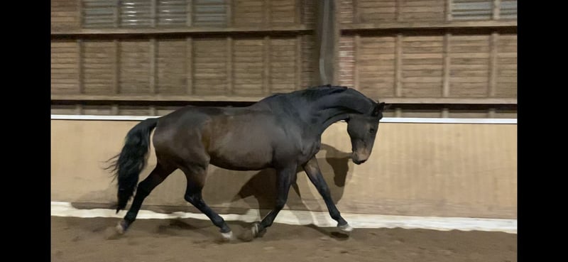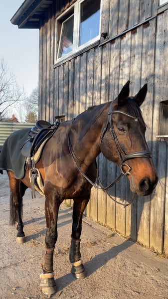 I am looking for a new person to care for my 174 cm Holsteiner gelding. Willo was introduced to M-level dressage and L-level show jumping in his youth. Despite being 22 years old, he is still in excellent shape and eager to be ridden and worked. Fair and consistent riding is immediately rewarded by him, making him a wonderful teacher both in jumping and dressage. We have been a team for about five years, and I have learned a lot from him. However, at this point in time, I am unable to provide him with the time, mental attention, and financial resources he deserves. Therefore, I am seeking an experienced individual or a family who will care for him, keep him healthy through riding or groundwork, or simply love him. About Willo and his needs: Willo simply does not like large herds. He thrives in small, quiet gelding groups (2-5 horses). He has a gentle heart, which sometimes shows a bit of a rabbit-like personality, especially around donkeys. Otherwise, he is quite easygoing and can go out in the arena or on the pasture with pretty much anyone. He walks, trots, and can canter, but only small jumps due to his age. He has not had any major issues so far, but shows signs of EOTRH, meaning his front teeth will eventually need to be extracted. I would contribute to the costs or have this done at our stable beforehand. After a period of adjustment, this would not restrict him, as he can still take in hay and grass with his lips. Recently, Willo was treated in the clinic for a molar infection. X-rays were taken, and he received proper therapy, so no further problems are expected at this time. He exhibits (not diagnosed) shivering, which I occasionally treat with devil’s claw and ginger in cycles—something we’ve never had issues with. He has a lot of equipment, which I am happy to include for an additional fee. My wish for him is a final home in a small gelding herd, with plenty of grass and 24/7 hay in winter or when pasture is not enough. Ideally, a stable where the horses are turned out in the herd from morning to evening and only housed in boxes at night. Willo needs plenty of space to lie down. He is also familiar with a paddock with ample space for resting. Of course, quality of life takes precedence over price; this is only a placeholder.