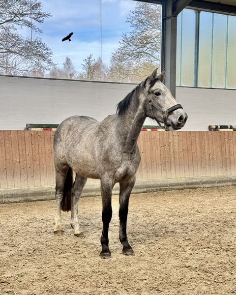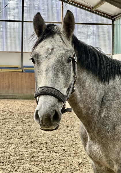 Gut Oersdorfs Cano ist ein dreijähriger Wallach aus eigener Zucht. Er ist artgerecht aufgewachsen und selbstverständlich regelmäßig geimpft, entwurmt und dem Schmied vorgestellt. Er ist altersgemäß noch roh, zeigt sich aber bereits im täglichen Umgang sehr brav und ist bereit für weitere Aufgaben. Auf den Videos sieht man ihn bei seinem ersten Freilaufen in der Halle. Abstammungsgemäß bewegt er sich mit drei guten Grundgangarten, wobei besonders der Gallop hervorzuheben ist. Canos Pedigree ist sowohl für den anspruchsvollen Freizeitreiter vielversprechend, lässt aber auch das Springreiterherz höher schlagen. So war sein Vater Reservesieger seiner Hengstleistungsprüfung mit sehr guter Dressur-, Spring- und auch Vielseitigkeitsbenotung. Seine Mutter kann Erfolge im Springen bis zur Klasse L vorweisen. Cano hat an der linken Wange und im Stirnbereich eine Muskelatrophie mit unbekannter Ursache, wodurch er teilweise ungleich kaut. Dadurch benötigt er eine regelmäßige Zahnkontrolle. Röntgenbilder des Kopfes und des Kiefergelenkes liegen ohne Befund vor. Weitere Informationen gerne auch telefonisch unter 01739171091.