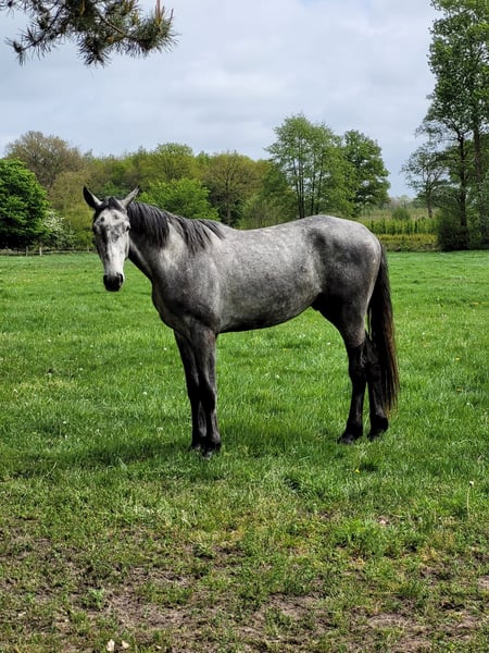 Wij bieden onze Holsteiner ruin "Condor" te koop aan. Hij is een nakomeling van Crack x Livello. In omgang is hij altijd vriendelijk en knuffelig. Zijn laatste zomers heeft hij doorgebracht in grote hengstengroepen op een ruime weide, zodat hij de tijd kreeg om op te groeien. Vanwege zijn huidige stokmaat van 1,86 m is hij nog niet aangezadeld, omdat wij hem voldoende tijd wilden geven om te groeien. Nu is hij klaar voor nieuwe avonturen en het leren kennen van zijn ruiter. In januari van dit jaar onderging hij een chipoperatie aan het achterste, linker spronggewricht en het achterste, rechterkniegewricht. De operatie is zeer goed verlopen en hij vertoont geen afwijkingen in beweging. Ook de röntgenfoto’s uit de kliniek laten een volledige genezing zien. Volgens prognoses zal de operatie hem in zijn verdere leven niet beperken. Verschillende dierenartsen geven aan dat een sportcarrière zeker mogelijk is. Op zijn voorhoofd heeft hij twee botachtige hoorntjes die tijdens de groei zijn gevormd. Na overleg met diverse dierenartsen is gebleken dat dit puur een esthetisch aspect is. Dit maakt onze Condor bijzonder. We hopen voor onze Condor een mooi nieuw thuis te vinden. Video’s en röntgenfoto’s kunnen indien gewenst worden toegestuurd. Aangezien we momenteel onze Holsteiner fokkerij willen verkleinen, neem gerust ook een kijkje bij onze andere advertenties.