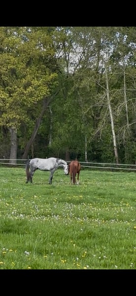 Sprzedajemy naszego holsztyńskiego wałacha „Condor”, który pochodzi od Craka x Livello. W codziennym kontakcie jest zawsze łagodny i przytulny. Jego ostatnie lato spędził w dużych grupach ogierów na rozległym pastwisku, co pozwoliło mu na spokojny wzrost i rozwój. Ze względu na jego obecny wzrost wynoszący 1,86 m, nie był jeszcze pod siodłem, ponieważ chcieliśmy dać mu czas na pełne wyrośnięcie. Teraz jest gotowy na nowe wyzwania i poznanie jeźdźca. W styczniu tego roku przeszedł operację wszczepienia implantu w lewym tylnym stawie skokowym oraz w prawym tylnym kolanie. Zabieg przebiegł bardzo pomyślnie i nie wykazuje żadnych nieprawidłowości w ruchu. Również zdjęcia rentgenowskie z kliniki potwierdzają pełne wygojenie. Według prognoz operacja nie wpłynie na jego dalsze życie, a różni weterynarze zapewniają, że nie stanowi to przeszkody w ewentualnej karierze sportowej. Na jego czole znajdują się dwa kostne „rogi”, które wykształciły się w trakcie wzrostu. Po konsultacji z kilkoma weterynarzami, są one wyłącznie kwestią estetyczną i nie stanowią zagrożenia. To właśnie czyni naszego Condora wyjątkowym. Mamy nadzieję znaleźć dla naszego Condora sympatyczny nowy dom. W razie potrzeby chętnie wyślemy filmy oraz zdjęcia rentgenowskie. Ponieważ obecnie zmniejszamy naszą hodowlę holsztyńską, zachęcamy również do zapoznania się z innymi naszymi ogłoszeniami.