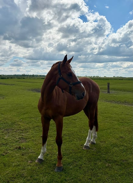 Zum Verkauf steht ein 3-jähriger Wallach aus familieneigener Zucht. Der auffällig gezeichnete Fuchs verfügt über ein erstklassiges Pedigree. Sein Vater Jasper (Heartbreaker x Darco) war im Springsport hocherfolgreich auf 5*-Niveau unterwegs. Zudem gehört sein Muttervater Diamant de Semilly mit über 200 auf 1.60m-Niveau erfolgreichen Nachkommen und über 300 gekörten Hengsten zu einem der einflussreichsten Vererbern unserer Zeit. Neben seiner sportlichen Genetik verfügt der Wallach über einen ausgeglichen und ehrlichen Charakter. Bei weiteren Fragen gerne telefonisch melden unter: 0160-96436624