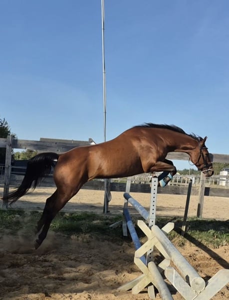 Breed: Holsteiner Date of Birth: 24.04.21 Lineage: Show Jumping Line 3389 Casall x Prisma 2 by Esteban. Regularly vaccinated and dewormed. Good with the farrier. Currently barefoot. Herd compatible and rather low in rank. Under saddle since June and accordingly started. The price increases according to performance level. Casimir is a great young horse with a lot of potential. He is very active and absolutely well-mannered to handle. The perfect young horse for transitioning from pony sport. I am happy to answer any further questions. Videos are available upon request. Best regards, Alexandra Sellenthin
