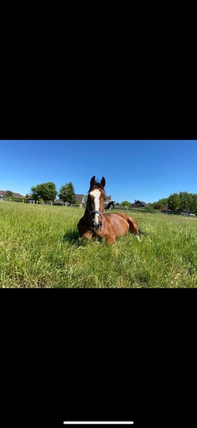 Zum Verkauf steht der Wallach meiner Freundin, die sich sehr schweren Herzens dazu entschieden hat ihn abzugeben. Donut ist seit Fohlenalter in Ihrem Besitz und bei uns im Betrieb artgerecht aber familiär im Herdenverband aufgewachsen. Über die Jahre hat sich nun leider gezeigt, dass Donut einfach nicht das passende Pferd für sie ist und so sind wir nun auf der Suche nach jemandem, der ihn mit all seinen Ecken und Kanten lieben lernt. Er wurde im Herbst/Winter 2024 schonend angeritten. Hatte im Frühjahr noch einmal 3 Monate Pause und befindet sich aktuell wieder im Aufbautraining. Er lässt sich in allen drei Grundgangarten in der Halle und auf dem Außenplatz reiten. Auch seine ersten Sprünge hat er unerschrocken und mit Begeisterung gemeistert. Das Gelände kennt er bisher nur an der Hand, beim Schmied ist er brav und läuft bei uns problemlos barhuf. Anhänger gefahren ist er bisher nicht regelmäßig. Er koppt sowohl in Boxen- als auch in Offenstallhaltung. Wir suchen für Donut einen sicheren konsequenten Reiter, der die nötige Ruhe und Geduld mitbringt um mit diesem sehr sensiblen Pferd zu arbeiten. Mit dem nötigen Know-How kann aus ihm mit Sicherheit ein zuverlässiger Sportpartner werden.