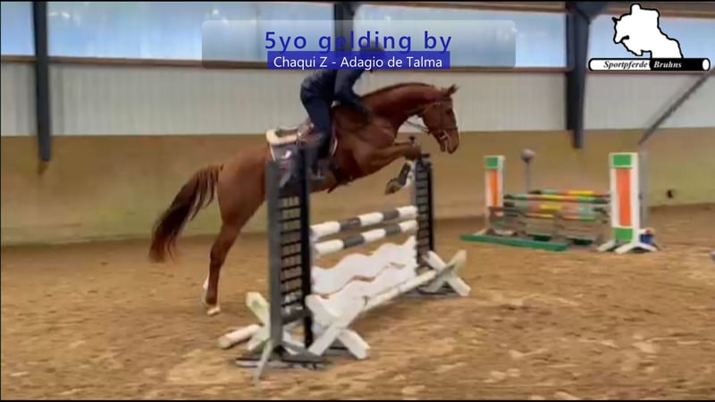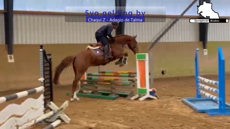 Sport Horses Bruhns: +49 173 / 75 82 768, www.sportpferde-bruhns.de, email: sportpferde.bruhns@aol.com Chaqui Adele, 5-year-old gelding by Chaqui Z out of Adagio de Talma, show jumping horse with up to 1.00 m level placings Further interesting links: Our sale horses: www.pferdeverkaufsmarkt.de