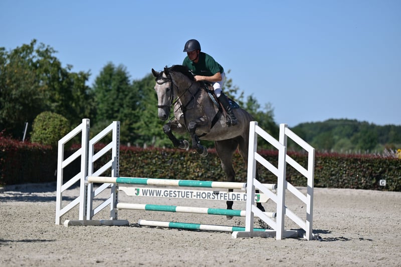 ⚜️ Hongre gris sportif avec un caractère exceptionnel et une excellente lignée en saut d'obstacles ⚜️ À vendre, un hongre gris expressif de 5 ans (par Livello x Corrado I) mesurant environ 174 cm – un véritable athlète avec beaucoup de potentiel et une attitude remarquable. Ce jeune hongre se distingue par : ✅ Caractère exceptionnel – clair d'esprit, facile à manipuler ✅ Montabilité & vue d'ensemble – toujours attentif, facile à monter ✅ Capacité au saut – avec une technique impressionnante et une bonne bascule ✅ Expression & présence – un véritable attrait sur chaque terrain de concours 🔹 Lignée : Livello x Corrado I – le meilleur sang de saut Holsteiner avec des reproducteurs de rang international. 🔹 Niveau d'entraînement : Cheval de saut A terminé 🔹 Prêt pour les compétitions : Premiers départs prévus – prêt pour la saison ! 🔹 Taille : environ 174 cm 🔹 Âge : 5 ans (né en 2020) Un jeune cheval de haut potentiel pour le cavalier de saut ambitieux avec des perspectives d'avenir sportives.