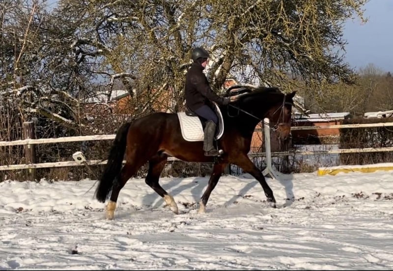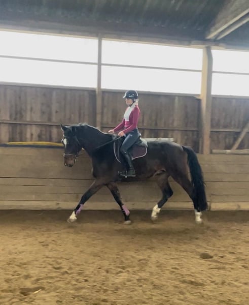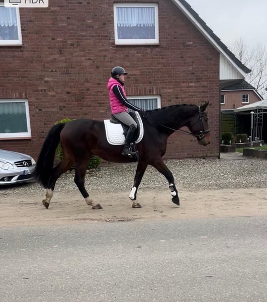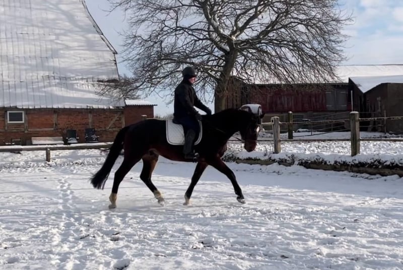 Directly from the breeder, a 5-year-old Holsteiner gelding by "Van Gogh" out of a mare by Casall/Contender is being offered for sale. Standing at 17.5 hands, he provides a confident riding sensation for the rider. He is easy to bring into a frame and possesses a pleasant willingness to work. Thanks to his calm temperament, he is very straightforward in daily handling. He has also completed his first trail rides very calmly and confidently. He gets along very well with other horses. Unfortunately, he has a radiological finding in his tarsal joint.