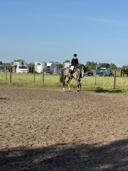I am offering my 5-year-old, well-behaved Holsteiner gelding for sale due to time constraints. He is sired by Don VHP Z out of Up to Date x Lord Z. This season, he placed in the 1.40m show jumping class, is not spooky, and is eager to go on to the other side. He has a practical canter and a very good work attitude. He is always attentive and tries to do everything correctly when ridden. He loads alone without issues, is well-behaved during hacks and at the blacksmith, and traveling alone to competitions is no problem. He stands 180 cm tall. He has good X-ray results. A fee of €35 is charged for a trial ride, which will be deducted from the purchase price if you decide to buy.