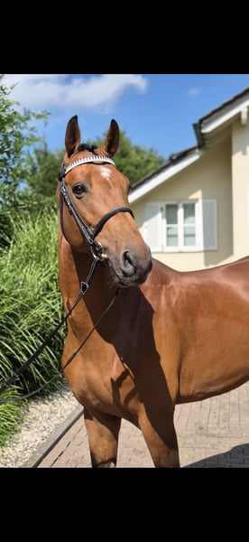 "MALOU" ist ein nun 6 jähriger Wallach, welcher schon eine tolle sportliche Laufbahn vorzuweisen hat. 2.5 jährig erhielt er ein positives Körurteil, welches seine Art und Einstellung am Sprung unterzeichnet. 4 und 5 jährig konnte er vom ersten Turnierstart an mit seiner Souveränität begeistern und sich durchweg bis zur Klasse M mit Siegen und Platzierungen in Szene setzen. Er qualifizierte sich ebenfalls zum Bundeschampionat und konnte dort ansprechende Runden zeigen. Seit ca 4 Monaten lebt er nun als Wallach und ist im Umgang sowie auch unter dem Reiter einfach zu bedienen. Aktuell mit Noten bis 8.8 beurteilt. Kennt täglichen Weidegang sowie Führmaschine. Vorne Beschlagen. Verkauf direkt vom Züchter in fördernde Hände. Röntgenbilder ohne Befund liegen vor. Weitere Infos /Videos gerne über WhatsApp 0151 61523331