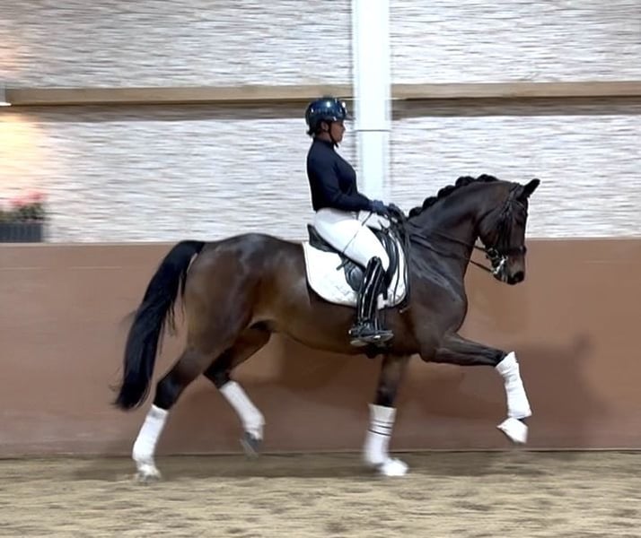 Liebe Interessenten, Für Terminvereinbarungen Probereiten senden Sie mir bitte eine WhatsApp. Für weitere Fragen bin ich tagsüber per WhatsApp erreichbar, telefonisch erreichen Sie mich am Besten zwischen 16 und 19 Uhr. Ich freue mich auf eine Kontaktaufnahme www.angelina-devittorio.de ⭐️Forty Eight VEC⭐️ Alter: 7 Jahre (2018) Größe: ca 1,66 m Abstammung: For Romance x Davignon Ausbildungsstand: M siegreich mit Noten bis 8,3, auf dem Weg zur Klasse S AKU: Gute Röntgenbilder vorhanden Zum Verkauf steht ein hochveranlagtes, bildschönes Dressurpferd aus bester Abstammung – ein siebenjähriger Sohn des For Romance I. Er überzeugt mit drei überragenden Grundgangarten, einer außergewöhnlich positiven Arbeitseinstellung und einem absolut zuverlässigen Charakter. Der Wallach befindet sich derzeit auf sicherem M**-Niveau und ist siegreich in Dressurprüfungen der Klasse M, mit Wertnoten bis 8,3 – ein weiterer Beweis seiner außergewöhnlichen Qualität und Leistungsbereitschaft. Trotz seiner beeindruckenden Präsenz ist er super kopfklar, dabei stets motiviert und mit genügend Go ausgestattet. Dadurch eignet er sich ideal für den Junioren- oder Junge-Reiter-Sport. Demnächst startklar in der Klasse S : Er geht sicher bis Zweier-Wechsel, hochtalentiert in den Traversalen und zeigt viel Talent in Pi und Pa – somit Potenzial für das ganz große Viereck! Ein Pferd mit Zukunft, das durch Ausstrahlung, Qualität, Rittigkeit und Charme gleichermaßen überzeugt ! ⚜️Tel: 0171-3438949 ⚜️a.devittorio@web.de ⚜️https://www.ehorses.de/angelinadevittorio Facebook und Instagram Angelina De
