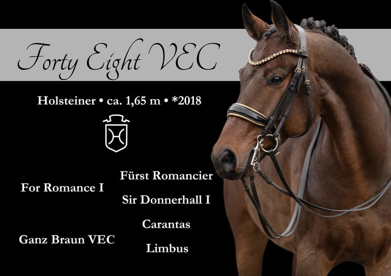 Dear Interested Parties, To arrange a test ride, please send me a WhatsApp message. For further questions, I am available during the day via WhatsApp, and you can reach me best by phone between 4 p.m. and 7 p.m. I look forward to hearing from you. www.angelina-devittorio.de ⭐️Forty Eight VEC⭐️ Age: 7 years (2018) Height: approximately 16.1 hh Pedigree: For Romance x Davignon Training level: Successfully competed in M-level dressage with scores up to 8.3, on the way to S-level X-rays: Good radiographs available For sale is a highly talented, stunning dressage horse of excellent pedigree – a seven-year-old son of For Romance I. He impresses with three outstanding basic gaits, an exceptionally positive work attitude, and a completely reliable character. The gelding is currently at a secure M** level and has won dressage tests at M level with high scores up to 8.3 – further proof of his extraordinary quality and willingness to perform. Despite his impressive presence, he is very level-headed, always motivated, and has plenty of go. This makes him ideal for junior or young rider sport. Soon ready to compete at S level: he confidently performs two-tempis, is highly talented in traversals, and shows great potential in piaffe and passage – offering the possibility for the highest levels of the sport! A horse with a bright future, convincing through charisma, quality, rideability, and charm alike! ⚜️ Phone: 0171-3438949 ⚜️ a.devittorio@web.de ⚜️ https://www.ehorses.de/angelinadevittorio Facebook and Instagram: Angelina De