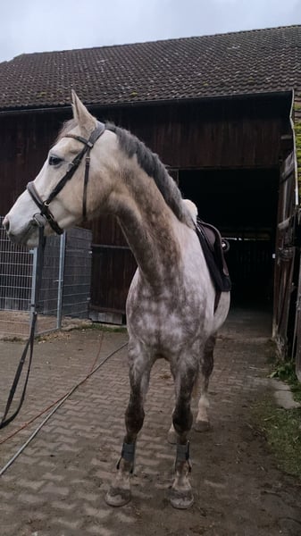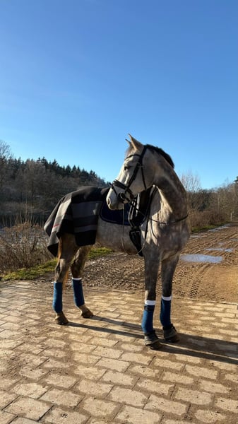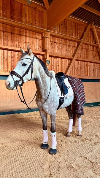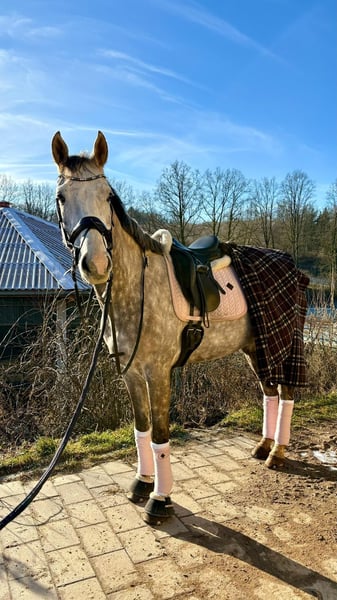 Lacro – charmanter Allrounder mit Herz und Vermögen Zum Verkauf steht unser wunderschöner Lacro, ein 7-jähriger Wallach mit einem Stockmaß von 168 cm. Er stammt ab von Livello x Con Air und bringt damit eine leistungsgeprägte Abstammung mit. Dieser sympathische Youngster überzeugt nicht nur durch seine ansprechende Erscheinung, sondern vor allem durch sein ehrliches und braves Wesen. Lacro ist im täglichen Umgang absolut zuverlässig, freundlich und ausgeglichen. Besonders hervorzuheben ist seine liebe Art im Umgang mit Kindern. Er wurde regelmäßig von Jugendlichen geritten und stets korrekt gearbeitet. Er ist vielseitig ausgebildet und sowohl im Springen als auch in der Dressur einsetzbar. In der Dressur befindet er sich auf A-Niveau, ist fein an den Hilfen, lernwillig und motiviert bei der Arbeit. Auch im Parcours zeigt er Vermögen, Übersicht und eine gute Technik am Sprung. Darüber hinaus ist Lacro ein verlässlicher Partner im Gelände und geht brav und gelassen ins Ausreiten. Turniererfahrung bringt er ebenfalls mit und konnte sich sowohl im Springen als auch in der Dressur bereits mehrfach platzieren. Auch in fremder Umgebung zeigt er sich nervenstark und leistungsbereit. Nach einer Verletzungspause ist er inzwischen wieder vollständig belastbar und wird regelmäßig trainiert. Er wurde behutsam aufgebaut und steht aktuell fit und motiviert im täglichen Training. Lacro ist das ideale Pferd für ambitionierte Jugendliche oder Reiter, die einen vielseitigen und ehrlichen Partner für Sport und Freizeit suchen. Bei ernsthaftem Interesse freuen wir uns über eine Nachricht. Probereiten nach Absprache möglich.