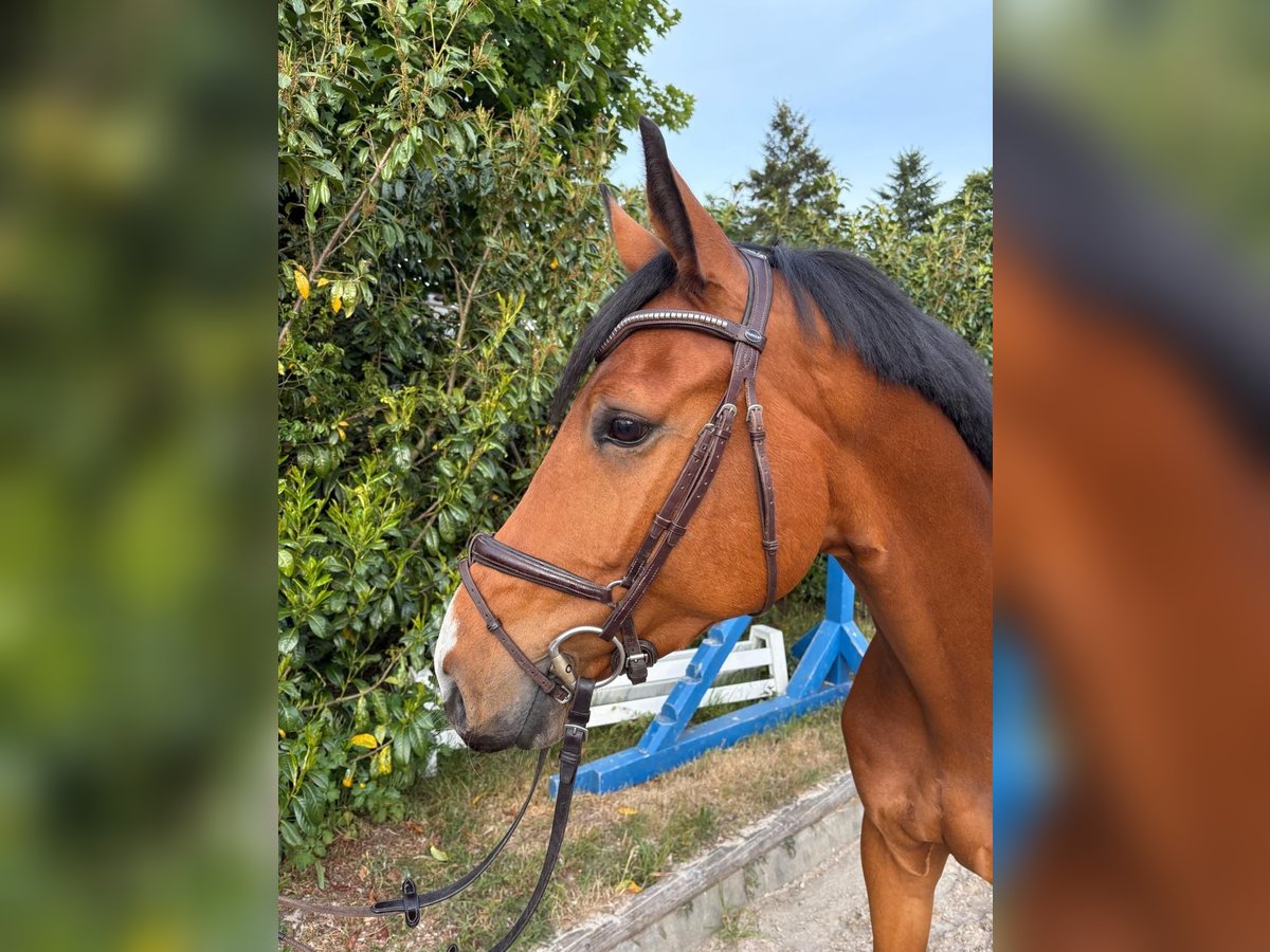 This wonderful Holsteiner gelding impresses not only with his striking appearance, talent, and rideability but especially with his breathtaking temperament. He is fearless, always eager to explore the other side, and constantly strives to make the impossible possible. He fights for his rider and always aims to please. He is very sweet and affectionate with people. His siblings are successful in show jumping at 1.60 m level. Unfortunately, Brownie has two chips, which is why he is offered at a significantly reduced price. A 5-star home is sought for this exceptional gelding, with people who will truly cherish this fantastic fellow.