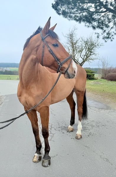Hannes è un bellissimo castrone nato nel 2019, alto circa 179 cm. Il cavallo, di sangue Del Arko de Hus e con una forte attitudine per il salto, sarà particolarmente adatto a cavalieri più grandi e gli garantirà grande gioia. Hannes è ben addestrato, attento e facile da gestire, molto docile e affidabile nel lavoro. Questo Holsteiner aspetta solo nuove sfide. Se saranno nel salto o nel tempo libero, lo deciderà il suo futuro proprietario. Per ulteriori informazioni e video, contattatemi pure via WhatsApp o telefonicamente al: 00436603632373 Luogo: Pelmberg 15 / Alta Austria Visite e prove di monta su appuntamento! Il trasporto del cavallo può essere organizzato su richiesta.