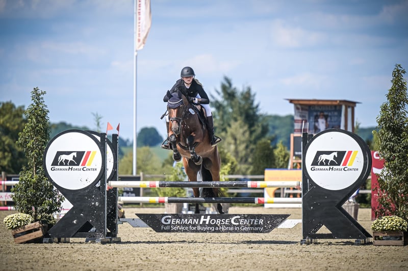 Se ofrece una yegua bonita y equilibrada, nacida en 2016, con pedigree de Caretino x Calido I. Ya ha tenido dos potros de excelente calidad, por lo que también es ideal para la cría. Por esta razón, hasta ahora solo ha sido presentada con éxito hasta la categoría L, pero demuestra mucho talento y potencial para tareas de mayor nivel. Bajo la silla, se muestra muy tranquila, serena y fácil de montar, tanto en un entorno desconocido como en el entrenamiento diario. Es fácil de montar, disfruta tanto en la doma como en el salto y siempre quiere agradar. También es completamente confiable para pasear, manteniéndose tranquila y segura en todo momento. Además, es tranquila en el herrado y en el transporte, y se lleva bien en el trato diario. Una yegua fantástica, con un carácter excepcional, mucha calidad y versátil para diferentes disciplinas, tanto como caballo de deporte como de cría.
