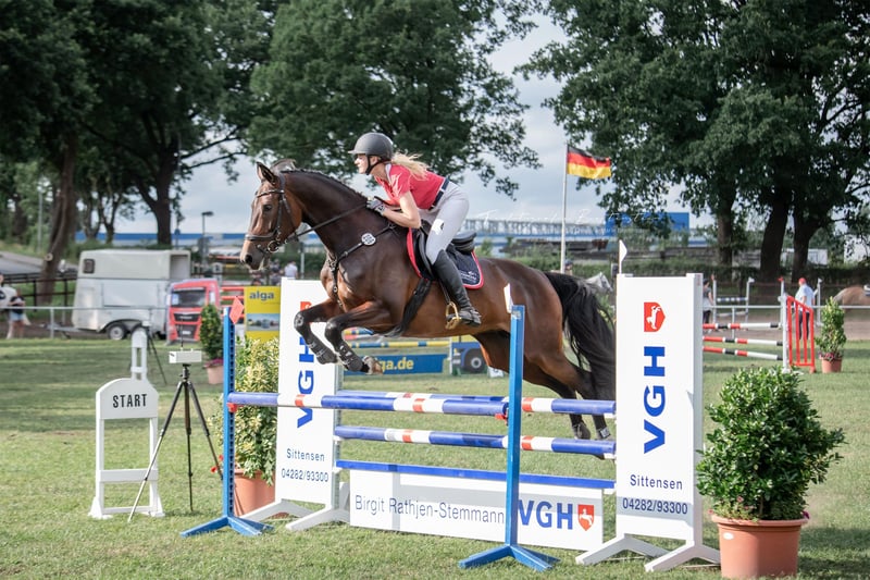 Auch für Wiedereinsteiger geeignet! Schweren Herzens habe ich mich dazu entschieden meine 11-jährige Holsteiner Stute zu verkaufen, da ich auf Grund von Zeitmangel den Reitsport aufgeben werde. Jette ist 1,68m groß und wurde von mir auf dem Turnier in Springprüfungen bis zur Klasse L vorgestellt. Zusätzlich wurde Sie von einem 14-jährigen Mädchen in Reiterwettbewerben und E-Dressuren/Springen vorgestellt. Dadurch verfügt sie über eine solide Grundausbildung und ausreichend Routine. In letzter Zeit habe ich meine Prioritäten auf die Platzarbeit und ausgiebige Ausritte gelegt auch Bodenarbeit findet Jette interessant und lernt dort sehr schnell. Sie geht allein und in der Gruppe ins Gelände und genießt lange Ausritte. Ich wünsche mir für Jette ein Zuhause in dem Sie als Freizeitpartner betrachtet und nicht als reines Sportpferd behandelt wird. Unter dem Reiter ist Sie brav und fein an den Hilfen, benötigt jedoch gelegentlich eine klare Führung, weshalb ich Sie nicht als reines Anfängerpferd empfehlen würde. Sie wird regelmäßig entwurmt und dem Hufschmied vorgestellt, sowie routinemäßig von der Osteopathin betreut. Zudem ist sie im Januar frisch geimpft, und die Zähne wurden ebenfalls im Januar behandelt. Es liegen keine gesundheitlichen Einschränkungen vor. Durch die Aufgabe des Reitsports kann das Equipment auf Wunsch gern mit übernommen werden. Es gilt absolut Platz vor Preis!