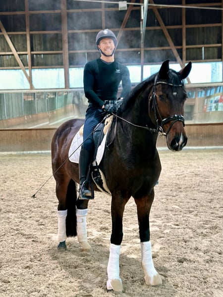 Questa robusta, quasi mascolina, ma con il cuore chiaramente di una femmina 😆, è davvero una bellezza. Molto tranquilla e piacevole nel rapporto, ed estremamente gentile e compatibile anche con altri cavalli. Sotto la sella è ultra comoda e dotata di un normale, ma estremamente corretto, passo gamba, garantendo sicuramente un galoppo esterno e diverse esercizi di base e classe L. È stata anche montata da cavalieri meno esperti e funziona bene sotto una gestione strutturata. Tuttavia, a mio avviso, non è un cavallo adatto ai principianti assoluti. In passeggiata in natura preferisce muoversi in gruppo e adora il quotidiano pascolo e il tempo in paddock! La cavalla ha un’istruzione molto versatile, ma si sente davvero a suo agio nel tempo libero. Con una reciproca simpatia, qui si può trovare una compagna per la vita.