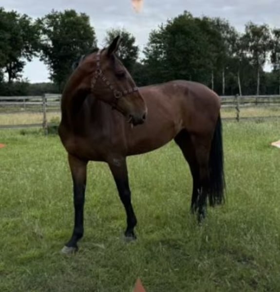 For sale is this beautiful, 10-year-old bay Holsteiner mare. !!Due to an unexplored lameness under load, she is being offered solely as a broodmare, companion, or leisure horse!! Holly is very sweet and uncomplicated! Whether for walks, groundwork, loading, farrier visits, or other activities, she is always reliable, friendly, and tries to do everything right. She is also very compatible with other horses. She is also very interesting as a broodmare; several 140/150 cm horses have already been bred from the same dam. Holst Stamm 7022 At age 7, she was placed in show jumping up to S* level with a very good attitude and ability! She is only being sold to good hands!! If you are interested or have further questions, please feel free to contact me. You can reach me at 0172 3241632.