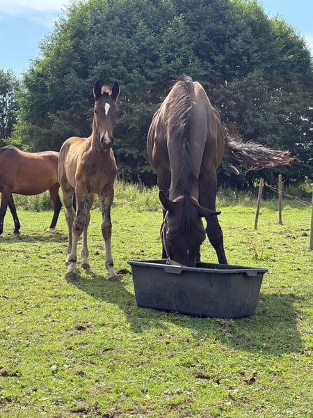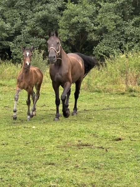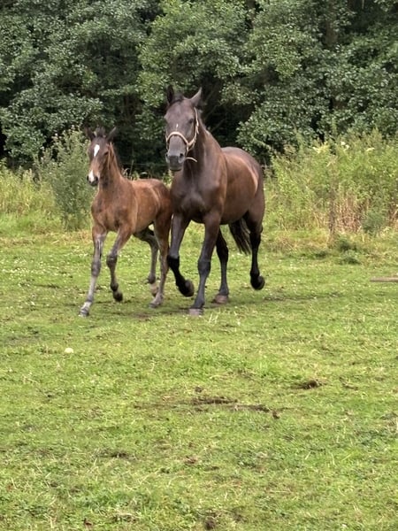 For sale is our 10-year-old mare Cantona due to lack of space and time. Cantona is currently pregnant by Monte Bellini. Riding is only possible to a limited extent, as she can become uncertain and block under more pressure. Therefore, we see her primarily as a broodmare, where she can better realize her full potential. In 2025, she already delivered a very typey and appealing filly, also by Monte Bellini (photos attached). Please feel free to contact us if you are interested or have any questions.