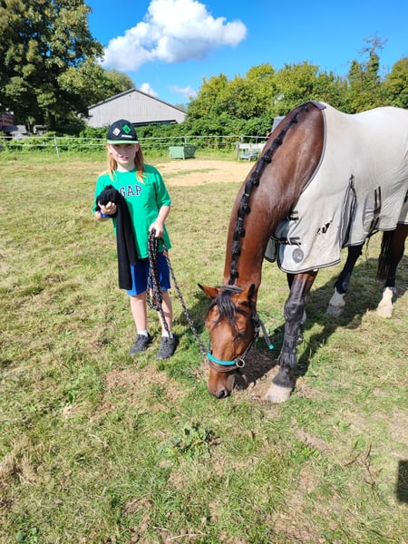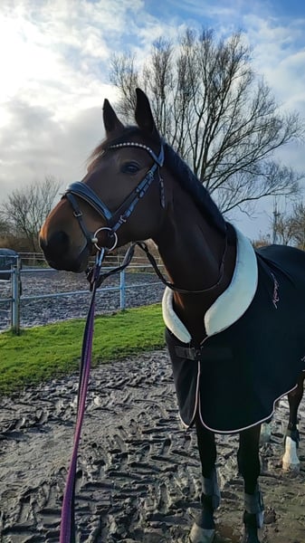 Brave Holsteiner Stute – turniererfahren & zuverlässig Zum Verkauf steht unsere liebe 12-jährige Holsteiner Stute (2014) mit einem Stockmaß von ca. 163 cm. Sie ist brav im Umgang, unkompliziert im täglichen Handling und turniererfahren. Die Stute ist dressurmäßig geritten, hat zwar Springvermögen, welches aber nicht gefördert wurde. Sie kennt Trubel auf dem Hof (Trecker, Hunde, Kinder usw), Turniere, Waldaustritte... Wir haben sie seit 06/2020 haben keine gesundheitlichen Probleme mit ihr gehabt. Sie wird regelmäßig geimpft, entwurmt, Osteopathisch behandelt und es kommt regelmäßig der Zahnarzt. Für ihre handliche Größe deckt sie gut ab. Sie wurde auch schon von Kindern und Wiedereinsteigern geritten und hat auf ihre Reiter gut aufgepasst. Georgia bringt ihr Zubehör mit (Sattel, Trense, Decke usw).... Verkauft wird sie, da meine Tochter noch ein weiteres Pferd hat und beiden Pferden nicht gerecht werden kann. Aktuell wird sie von 2 Reitbeteiligungen geritten. Sie lebt in Boxenhaltung, geht täglich mit einer kleinen Stutengruppe auf Paddock/Weide. Evtl auch für die Zucht interessant, sie hat die SLP absolviert und ist eingetragen. Abstammung: Alvaro x Levisto Weitere Informationen gerne per Nachricht oder in einem Telefonat. Platz vor Preis- wir wünschen uns für sie ein schönes zu Hause, vorzugsweise ein "für immer zu Hause" damit sie kein Wanderpokal wird. Wichtiger Nachtrag: Sie ist kein Gewichtsträger! Um (weiteren) Reittourismus zu vermeiden, nehmen wir für's Probereiten 25€ . Bei Kauf werden diese selbstverständlich verrechnet. Ich bitte um Verständnis.