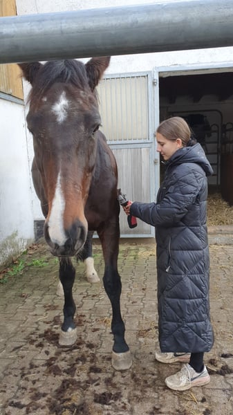 Sprzedam klacz holsztyńską, lat 12, łagodna w obyciu, ciemnobrązowa, wzrost około 175 cm. Miała 3 źrebięta, obecnie jest w trakcie szkolenia. Jako koń rekreacyjny. Obecnie jeźdźcem jest trener, koń jest pod pełnym siodłem, jeździ w ujeżdżeniu i skokach. Wymaga jeszcze poprawy równowagi i pewności siebie. Ma dużo energii! Nie jest to koń dla początkujących. Lubi terenowe przejażdżki. Przednie kopyta są podkuwane, jest łagodna przy kowalu. W grudniu była u dentysty, jest zaszczepiona i odrobaczona.