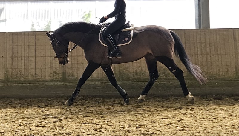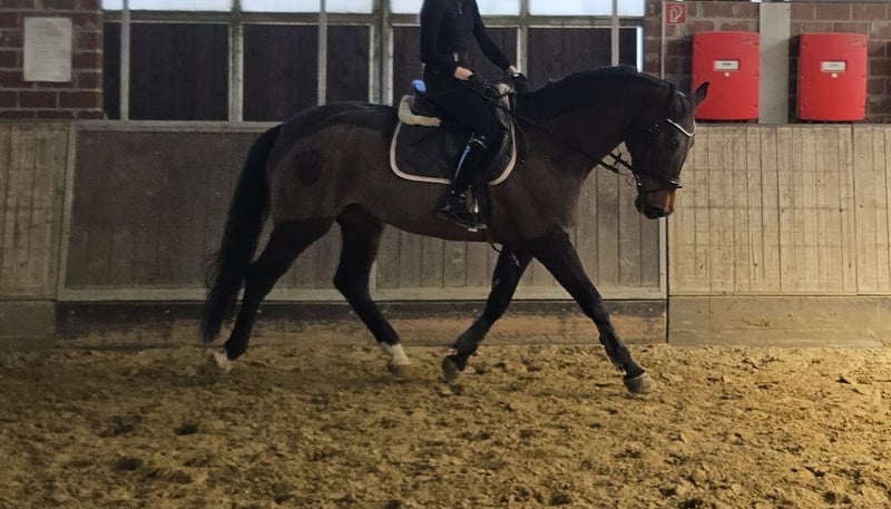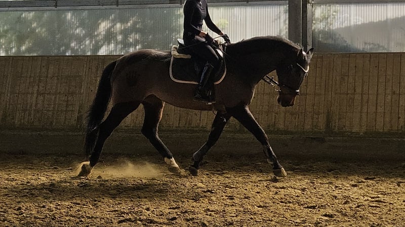 Lotta to około 165 cm wysoka klacz holsztyńska. Pochodzi od Carlos DZ, Cantus, Caletto I / Wonda, Lucky Champ. Z ciężkim sercem sprzedajemy ją z powodu braku czasu. Ta urocza klacz była dotąd koniem nauki dla juniorów i brała udział w kilku konkursach skoków na poziomie E i A. Z młodymi jeźdźcami zdobyła już kilka miejsc na podium. Lotta jest świetna w jeździe i zawsze wykazuje się niezawodnością pod siodłem. To prawdziwy nauczyciel, jak to się mówi, „potrafi czytać i pisać” :-) Szukamy dla niej końca drogi. Mimo 14 lat, jest w doskonałej formie. Jeśli jesteś zainteresowany/-a filmami, napisz do nas bezpośrednio przez WhatsApp pod numer 0177/2721831, a po więcej informacji chętnie zadzwonimy.