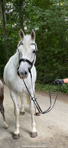 This lovely 14-year-old grey mare is looking for a caring new home. In recent years, she has enjoyed her role as a mother, giving birth to two wonderful foals. Before becoming a broodmare, she was successfully competing in show jumping and has achieved results up to M* level. She is shoeing-safe and is familiar with the farrier, although she would need some practice with loading (which should not be a problem). 😊 If genuinely interested, please feel free to contact me. Currently, she is being lunged a bit, and light riding could also be possible if there is serious interest in her as a riding horse.
