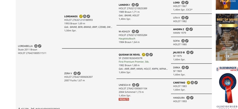 Lordabella, geb. 2011, war in ihrer ersten Karriere erfolgreiche Zuchtstute. Sie hat bereits einen Nachkommen, der bis S** Springen in der Schweiz erfolgreich ist, weitere Nachkommen springen bereits bis M** und sind in Springpferdeprüfungen erfolgreich. Zwei Nachkommen sind bei uns zu besichtigen. Diese sind sehr menschenbezogen, motiviert und leistungsbereit, leichtrittig, vorsichtig am Sprung und einfach im Umgang. Bella selbst ist ebenso lieb im Umgang. Nach 7 Fohlen konnte ich sie wieder "sportlich" nutzen und habe sie langsam als Reitpferd aufgebaut. Nicht viele Zuchtstuten machen das so bereitwillig und motiviert mit. Sie ist selbst ebenfalls immer motiviert, fleißig und sehr menschenbezogen. Im letzten Jahr ist sie erfolgreich mit meiner Nichte auf Turnier gestartet. Sie reitet sie mittlerweile auf E-A Niveau. Ich selbst bin sie zu Hause bis L Niveau gesprungen. Ich kann sie mir sowohl wieder als Zuchtstute als auch tollen Freizeitpartner (auch "Mutter-Tochter"-Gespann) vorstellen. Sie läuft bei uns im Paddocktrail barhuf, dabei ist sehr gut verträglich mit den anderen Pferden. Schmied, Verladen, Ausreiten, Handarbeit ist alles kein Problem. Es ist auf gute Heuqualität zu achten, da ist sie etwas empfindlich. Ansonsten war sie noch nie krank oder verletzt. Gern telefonisch bei Interesse unter 0177-55075854 melden. Bitte nur bei ernstgemeintem Interesse melden. Die Stute wird nur in gute Hände und in 5* - Zuhause abgegeben. Videos der Nachkommen und Erfolgsübersicht sind über ClipmyHorse und Rimondo zu finden. Ein Video von Bella stelle ich noch ein.