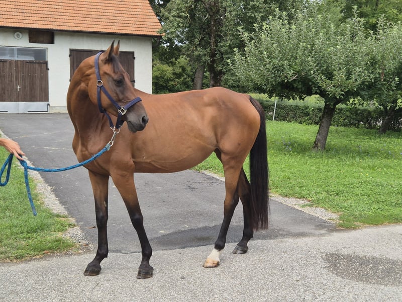 Nice and experienced mare suitable for a beginner in show jumping or for recreational/hobby riding. She enjoys going forward and is always motivated for training. She has competition experience in show jumping and has also had a few foals.