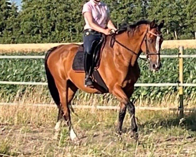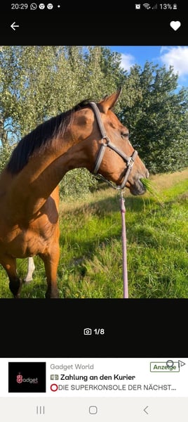 Holsteiner leisure mare with potential seeks experienced rider For sale is a beautiful Holsteiner mare with excellent lineage: Father: Larimar – known for rideability and jumping ability Mother: On Legende – performance-tested and solidly bred 🗓 Born: 14.02.2010 📏 Height: approx. 1.65 m 🎨 Color: Dark brown 🐴 Housing: Open stable ⚖ Character: Low-ranking, sensitive, very people-oriented after building trust She has been ridden for leisure purposes, shows talent in jumping, and enjoys working – both in the arena and in groundwork. She responds well to aids and offers a lot of joy with a secure rider's hand. In the field, she is rather nervous and spooky – therefore not suitable as a beginner or children's horse. She desires an experienced, sensitive rider who understands her and leads her consistently but lovingly. Currently, she is not being ridden and would need to be brought back into condition (fitness & musculature). 📌 Important note: The right match comes before the price – we are looking for the right person, not the highest bidder. If you are seriously interested, we look forward to hearing from you!