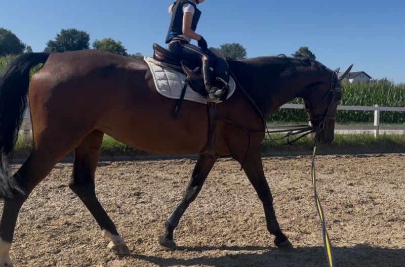 Zum Verkauf steht eine 15-jährige Holsteiner Stute, sie ist auf M*-Niveau im Springen und auf A*-Niveau in der Dressur platziert und sucht einen Reiter, der sie weiterhin fördert und fordert ohne Absichten für den hohen Sport (nicht aus gesundheitlichen Gründen). Am Boden wie unter dem Sattel zeigt sie sich stets ehrlich und leistungsbereit. Sie ist leichtrittig ohne das Können ihres Reiters auszutesten. Sie wird regelmäßig von einem 7-jährigem Kind geritten und zeigt sich dabei stets brav, aufmerksam und vorsichtig. Sie geht sowohl alleine als auch in der Gruppe ins Gelände. - Kennt nur Boxenhaltung mit täglichem Weidegang - Vierfach beschlagen (kein Spezialbeschlag) - Verladefromm (Anhänger und LKW) - Kennt Doppellonge - Kennt Ausbinder - Kennt Kleinkinder und Kinderwagen - Kennt Hunde - Kennt Führmaschine - Keine Allergien Wichtig: Sie ist nicht für den Schulbetrieb und nicht ausschließlich für absolute Reitanfänger oder sehr schwache Reiter geeignet. Fazit: Ein echtes Herzenspferd für jemanden, der einen erfahrenen, leistungsbereiten und zuverlässigen Partner sucht – sei es für einen ambitionierten Freizeitreiter, für kleinere Turniere oder einfach schöne Ausritte. Die Stute ist seit ihrem fünften Lebensjahr an meiner Seite und wird entsprechend nur in die besten Hände abgegeben. Aufgrund einer Babypause meinerseits und einer anschließenden Verletzung ihrerseits (wieder vollständig genesen) wurde sie in den letzten 3 Jahren auf keinem Turnier vorgestellt. (Probereiten 40€ mit entsprechender Verrechnung bei Kauf)