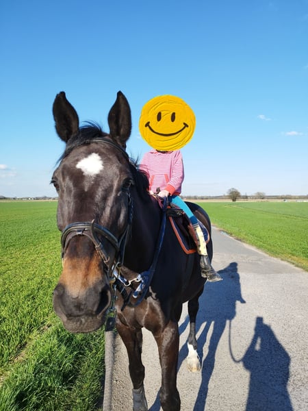 I am offering my mare Samoa as a school horse, a reliable trail riding partner, or a companion horse. She is very easy to handle in daily life, well-behaved when farrier and veterinarian are present, and enjoys relaxed rides in the countryside. She proves to be confident and steady in her demeanor. The only issue: For approximately five years, she has had a bump on her neck caused by an old injury. This has been examined by a veterinarian and does not affect her daily life. I am looking for a loving and responsible home for her. Please only serious inquiries.