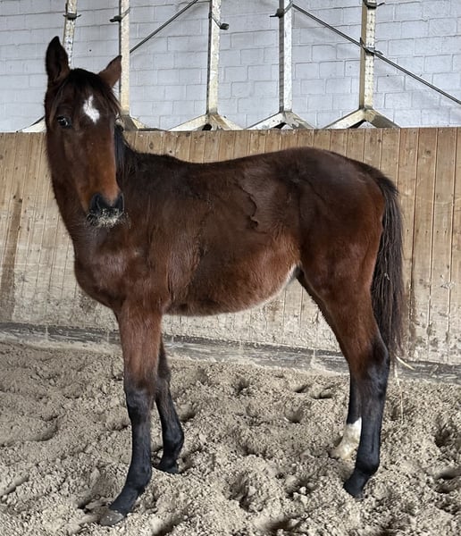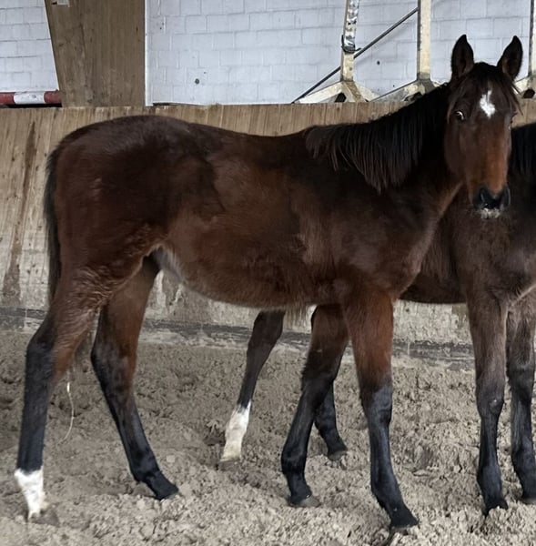 Te koop staat onze Cést un Reve-veulen GK Tania. Het merrieveulen verkeert in uitstekende gezondheid, maar sinds haar geboorte mist de Holsteinse het linker oog. Ze is zo ter wereld gekomen en heeft tot op heden geen enkele beperking. We doen afstand van dit kleine zonnestraaltje omdat we naast onze eigen boerderij, door het overlijden van mijn vader eind oktober, ook zijn paardenbestand hebben overgenomen. Omdat we van twee bedrijfslocaties één willen maken, moeten we afscheid nemen van enkele fokpaarden – en daar hoort ook deze lieve veulenkamer bij. Momenteel loopt het veulen samen met drie andere jonge paarden in een groepsbox. Ze is ontwormd, heeft een zeer goede grootte voor haar leeftijd en is uiterst sociaalvaardig. De prijs is uitsluitend gebaseerd op het feit dat GK Tania als handelspaard door haar beperking niet geschikt is. Als u serieus interesse heeft in deze jonge dame, neem dan gerust contact met mij op. Gelieve vooraf geen vragen te stellen over de laatste prijs. Serieuze kopers komen langs, bekijken het veulen rustig en, als alles klopt, kunnen we graag over de prijs praten.