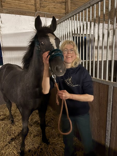 Yegua de Holstein muy exitosa, ha competido en disciplinas de concurso completo a nivel nacional e internacional hasta CCI 2* con jóvenes jinetes. En salto ha obtenido victorias hasta nivel M. La yegua fue retirada del deporte a finales de 2019 para criar caballos jóvenes. Ahora ha tenido su segundo potrillo. Se trata de un extraordinario potro de gran tamaño, muy moderno, de color gris oscuro, hijo de un semental de sangre interna, que será destetado en breve. Después, la yegua volverá a ser montada brevemente y estará a la venta. Ideal para jinetes principiantes en salto A y L. La yegua está en plena forma, es fácil de montar y siempre salta con confianza. Prioridad a la calidad, no al precio.