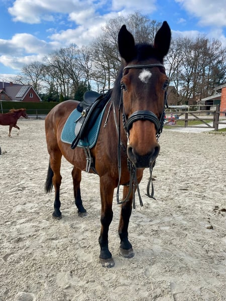 Verkaufe eine Holsteiner Stute Abstammung: Cristo x corofino 1 x Silvester Wontess ist im Jahr 2006 geboren. Sie ist braun und hat ein Stockmaß von ca 164 cm. Die Stute ist ideal für den Freizeitbereich geeignet. Ob Unterricht auf dem Reitplatz, Ausritte, Spaziergänge oder entspannte Tage im Gelände – sie ist eine treue Begleiterin. Nicht für Anfänger geeignet. Wontess hat eine sehr interessante Abstammung und hatte auch schon bereits Fohlen. Bei Interesse oder weiteren Fragen stehe ich Ihnen gerne zur Verfügung. Besichtigung und Proberitte sind nach Vereinbarung möglich.